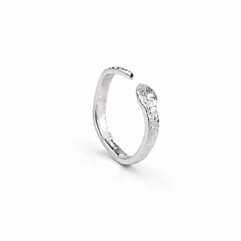 The snake has long been a powerful symbol of renewal, transformation, and eternal life. This elegant snake ring wraps gracefully around the finger, creating a modern yet timeless piece of jewellery.